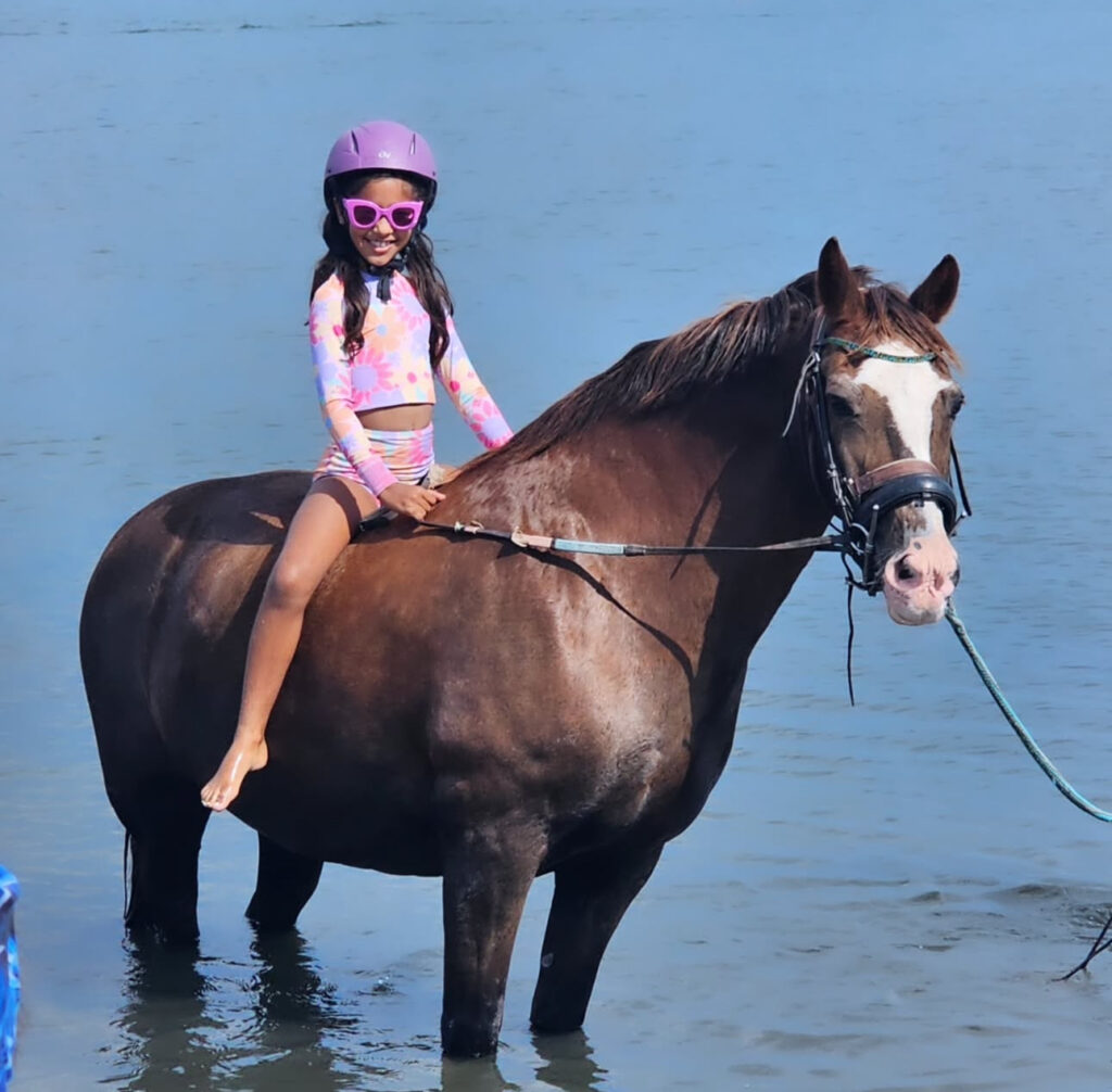 Jessie is a stunning large Welsh pony with a gleaming black coat, four perfect white socks, a bold blaze, and even a little belly spot that makes her extra unforgettable. As beautiful as she is kind, Jessie is wonderful with kids and beginners, patiently showing them the ropes of riding and jumping. She’s as steady and reliable in lessons as she is eye-catching in the ring, making her both a trusted teacher and a showstopper. Whether she’s helping riders gain confidence or turning heads with her style, Jessie’s Girl always shines.